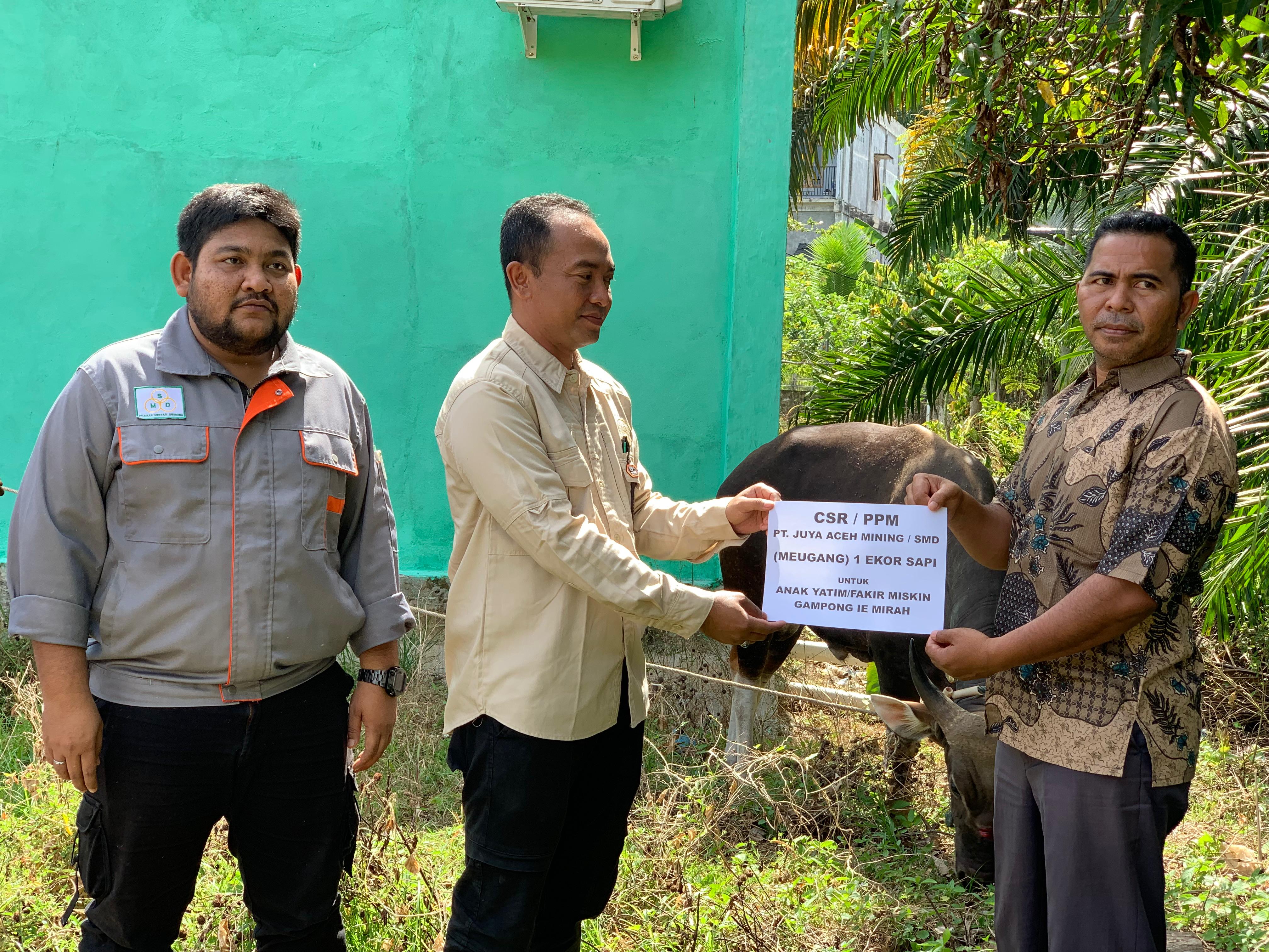 Kali ini, dua perusahaan tambang bijih besi itu menyalurkan bantuan daging untuk yatim dan fakir miskin di Desa Ie Mirah dan Desa Alue Dawah di Kecamatan Babahrot serta untuk Desa Padang Baru dan Desa Pulau Kayu di Kecamatan Susoh, Kabupaten Aceh Barat Daya (Abdya), Aceh.