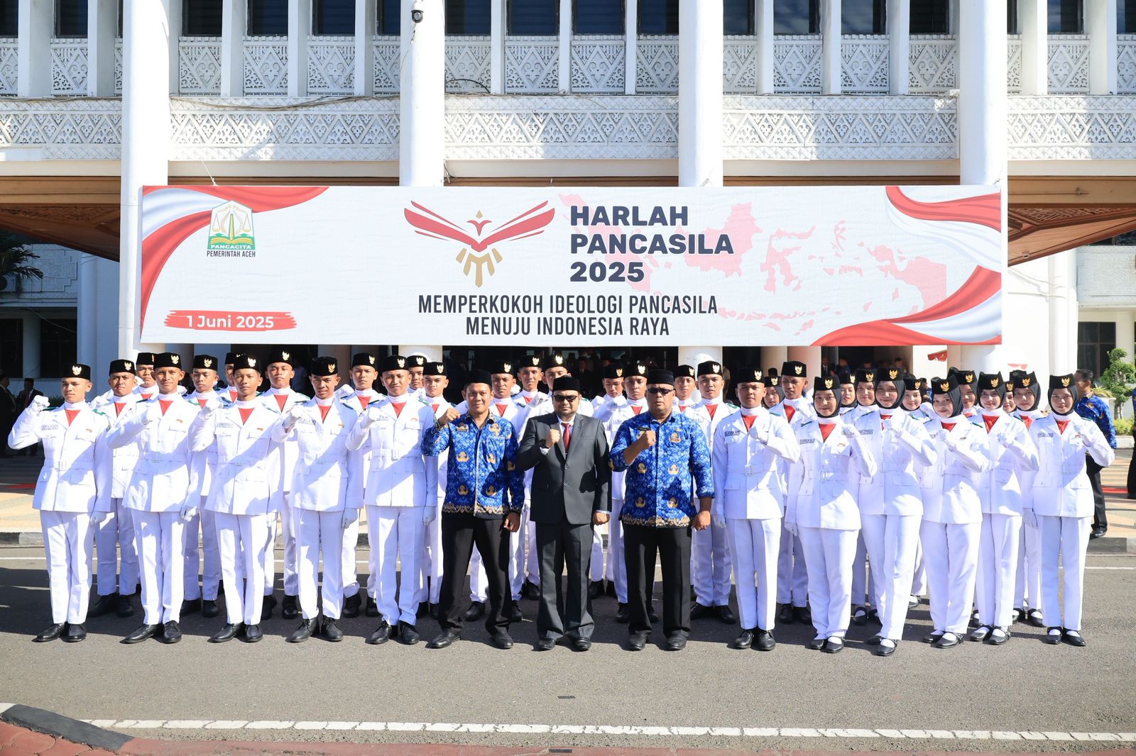 GUMPALANNEWS.COM I Banda Aceh - Tim Pasukan Pengibar Bendera Pusaka (Paskibraka) Provinsi Aceh tahun 2024 sukses menjalankan tugasnya dengan baik saat mengibarkan bendera sang saka merah putih pada upacara peringatan Hari Lahir Pancasila yang digelar di kantor gubernur Aceh, Minggu, 1 Juni 2025. Pasukan pengibar bendera ini menunjukkan semangat dan dedikasi tinggi, tampil dengan penuh disiplin dan ketepatan waktu, serta menjaga kehormatan negara melalui setiap langkah mereka.